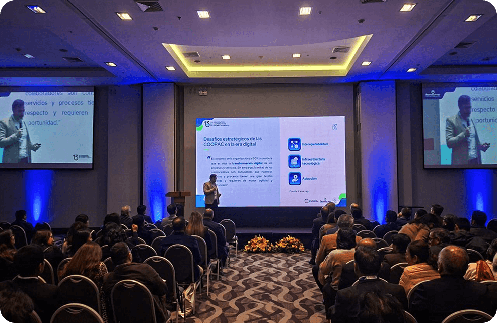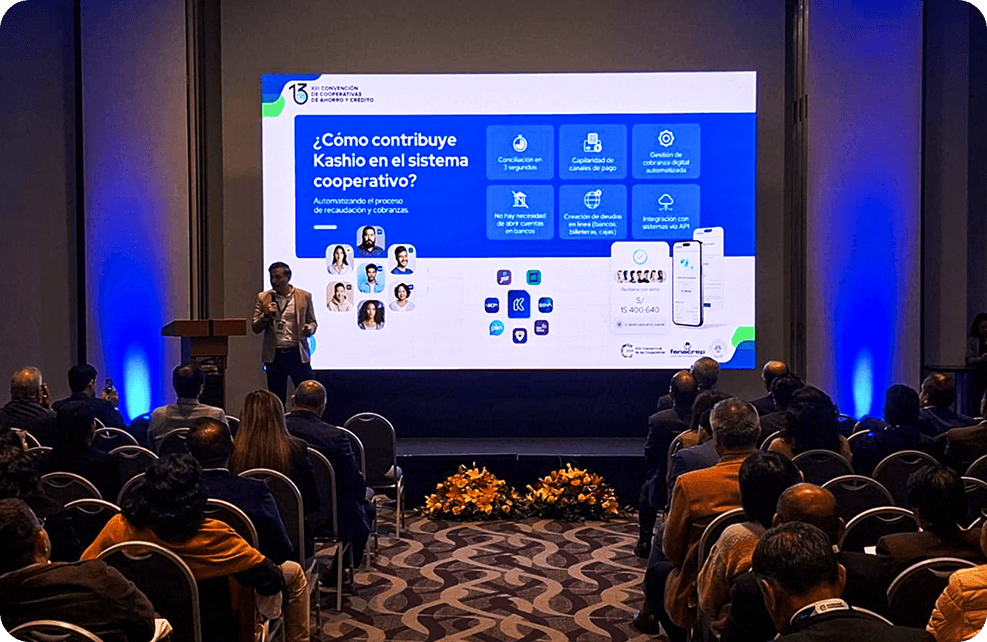 Durante el encuentro, Franco Fernández, Commercial Manager de Kashio, presentó la ponencia “Recaudo y gestión oportuna de cobranza”, donde abordó cómo la automatización financiera permite a las cooperativas optimizar su gestión de pagos, reducir costos operativos y mejorar la experiencia de sus socios.