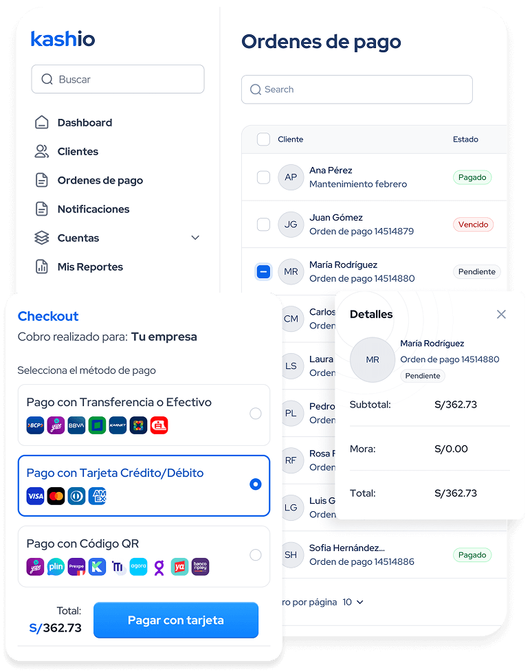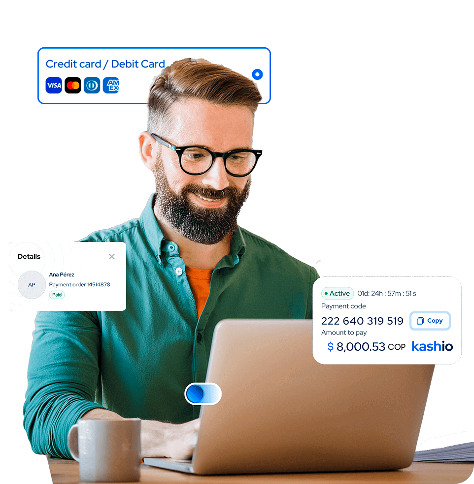 Tus clientes pueden elegir pagar desde el canal de su preferencia. Con Kashio, acepta pagos con tarjetas, transferencias bancarias y billeteras digitales, conciliando todo en una sola plataforma.​