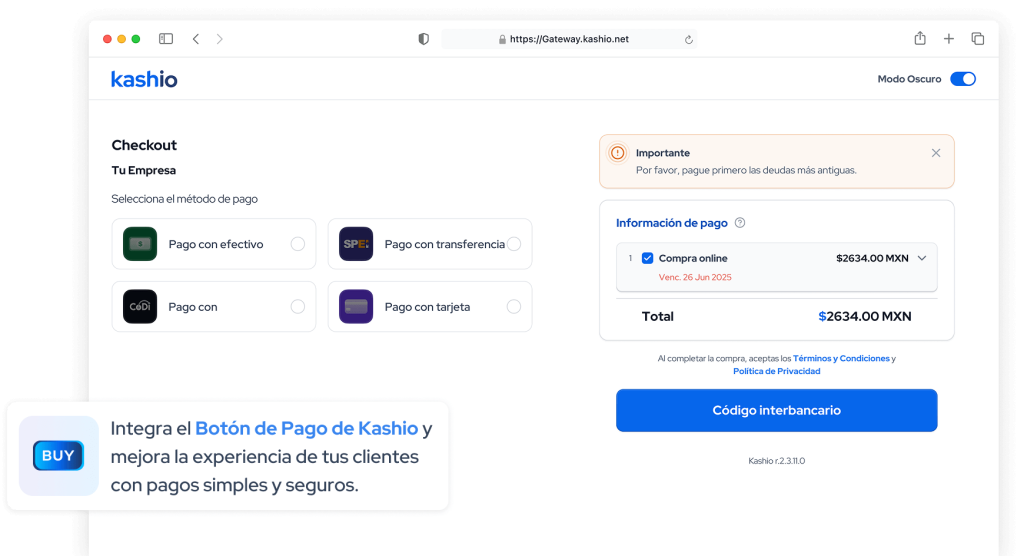 Ofrece a tus clientes un checkout rápido y sin fricciones con múltiples opciones de pago en un solo clic.